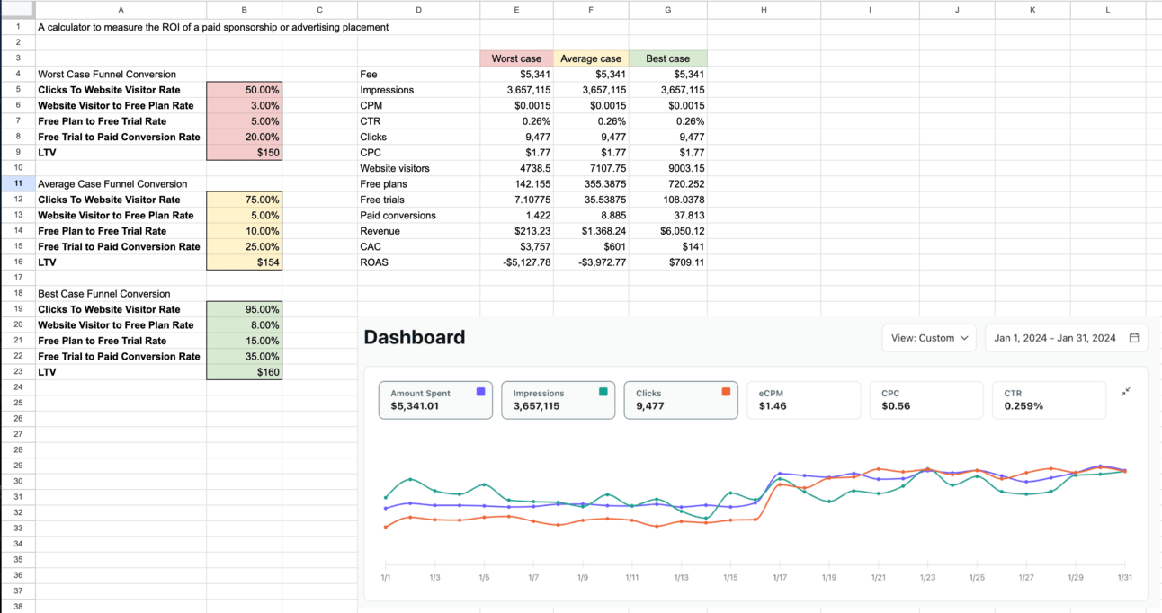 I encountered this problem many times over the past 5 years. I became tired of not knowing. So I created a spreadsheet that calculates whether a paid ad/sponsorship is worth it or not, and now I’m pumped to share it with you.
